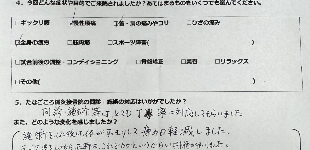 【お客様の声】長年の腰痛と全身の疲れに。ラジオ波の驚きのデトックス効果!【江北町】